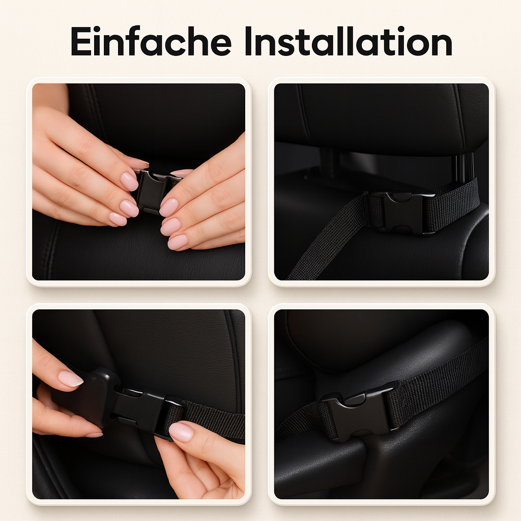 • Montage: Einfache Befestigung mit verstellbaren Gurten – passt auf fast alle Autositze
